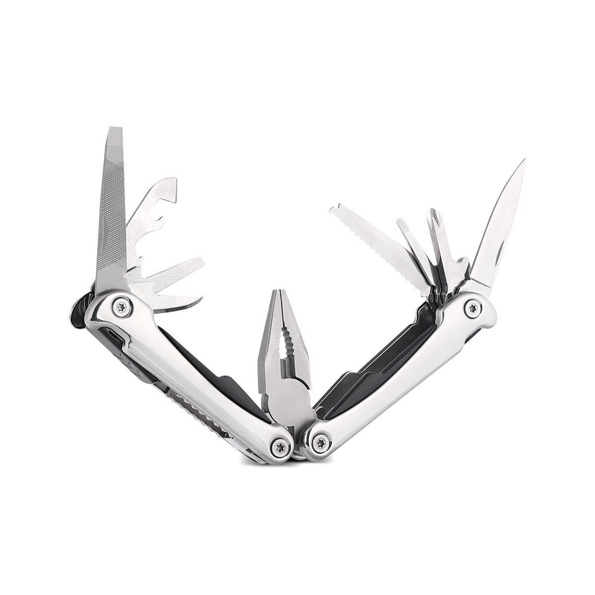 Çok Fonksiyonlu Pense, dayanıklı paslanmaz çelikten üretilmiş, çok amaçlı bir araçtır. Pense fonksiyonunun yanı sıra çeşitli tornavida uçları, bıçak, testere, şişe açacağı, konserve açacağı ve daha birçok işlevi bir arada bulundurur. Ayrıca, güvenli kullanım için özel bir kilit mekanizmasına sahiptir; bıçak açıldığında, tekrar kapatmak için gövde üzerinde bulunan siyah kısma basmanız yeterlidir. Ürün, kolay taşıma ve saklama için bir kılıf ile birlikte gelir.