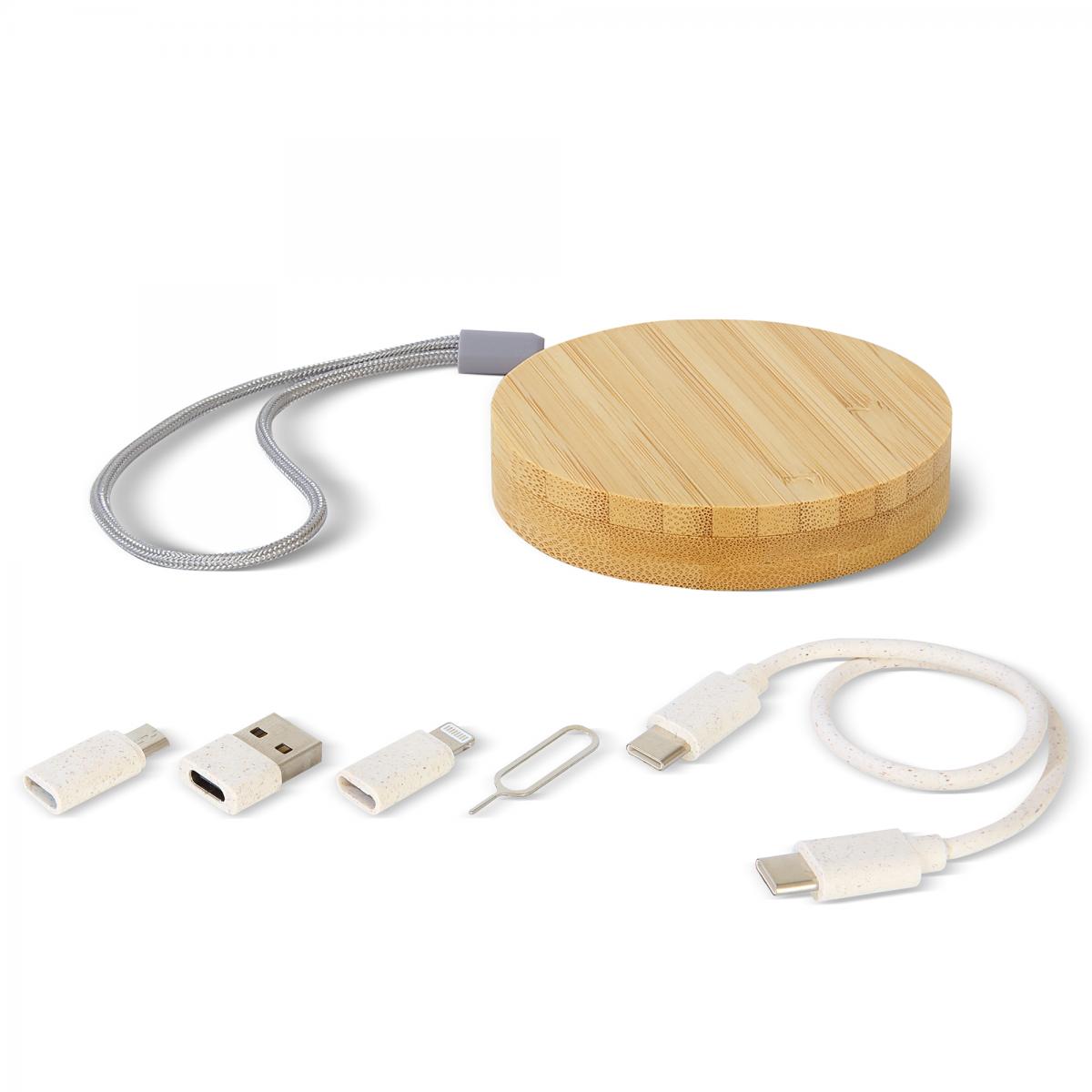 Yuvarlak Bambu Çok Fonksiyonlu Taşınabilir Kablo Seti – Promosyon Kablo Seti