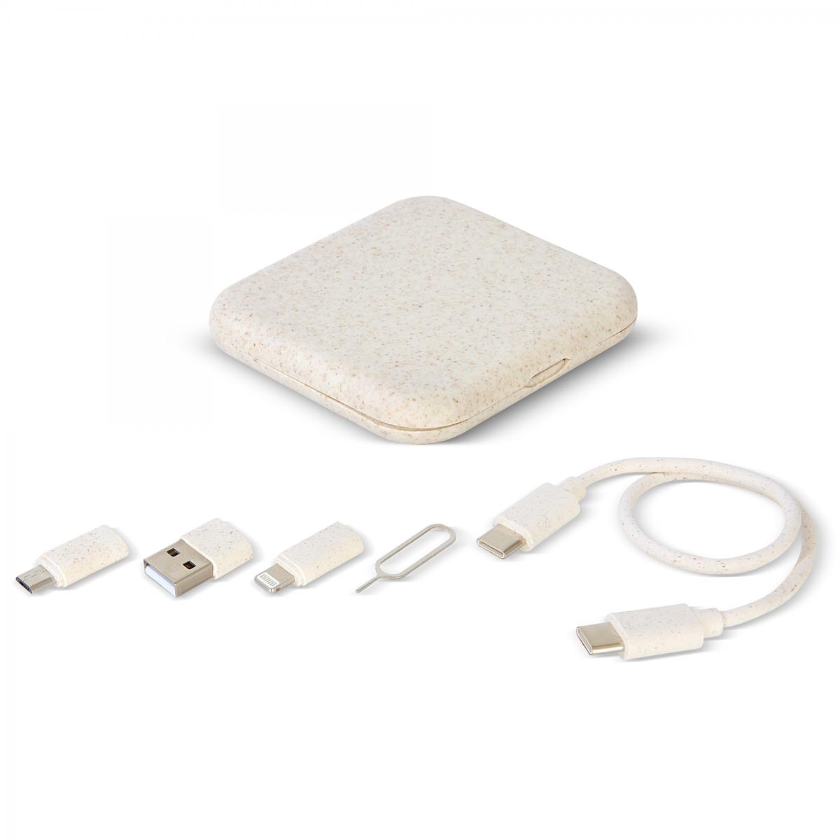 Dikdörtgen Çok Fonksiyonlu Taşınabilir Kablo Seti – Bambu Promosyon Kablo Seti