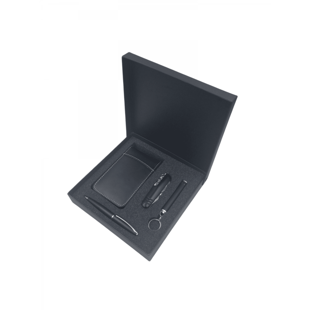 Hediye Seti, her gün kullanabileceğiniz pratik araçlar sunar. Set, çok işlevli bir çakı, not almanızı sağlayacak bir not defteri, acil durumlar için güçlü bir el feneri ve yazı ihtiyaçlarınızı karşılayacak zarif bir tükenmez kalem içerir. Bu set, işlevselliği ve taşınabilirliği ile dikkat çeker.