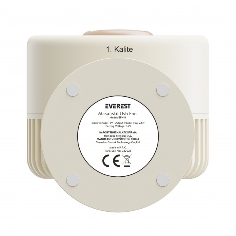 Everest EFN14 şarjlı masaüstü USB fan, yaz aylarında serinlik sağlayan pratik ve şık bir üründür.